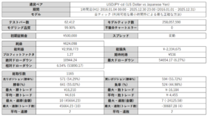 ナンピン系EAのようにハイレバレッジを生かして破綻リスク抱えながら運用するのではなく、単ポジション型で長期運用で稼ぐ事を目的としている。